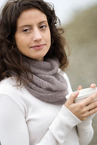 Wear this sheer seamless loop as a long, endless scarf, or twisted double as a cowl, or around your shoulders as a wrap. We’ve knit it on the bias so the edges don’t roll and it sits nicely on the shoulders. Light as air, it folds up to nearly nothing, and is equally talented at dressy and casual—the perfect piece for travel.